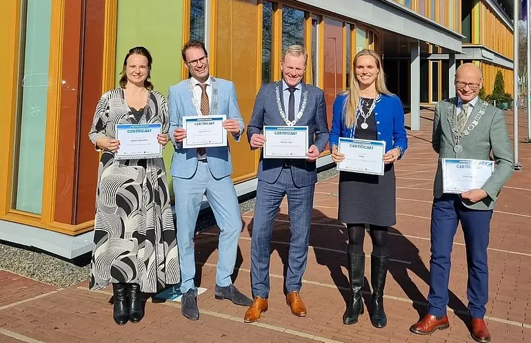 Om inwoners te inspireren, gingen ook de burgemeesters zelf de uitdaging aan. Peter Heijkoop (Leiden), Nadine Stemerdink (Voorschoten), Fred van Trigt (Zoeterwoude), Emile Jaensch (Oegstgeest) en Tjarda Struik (Leiderdorp) volgden de cursus en ontvingen hun certificaat.